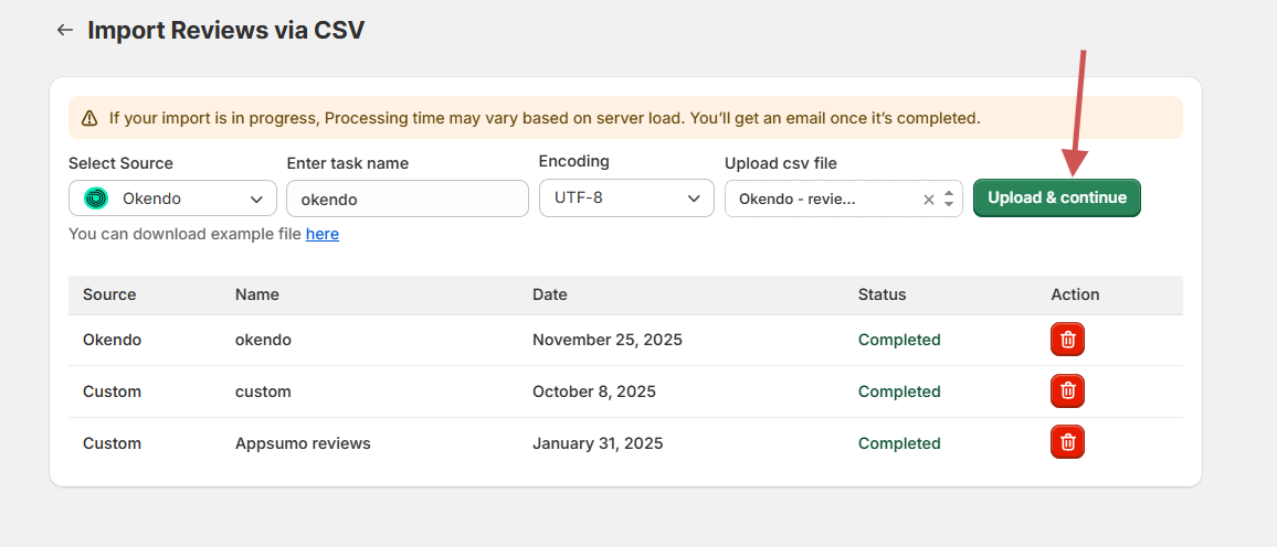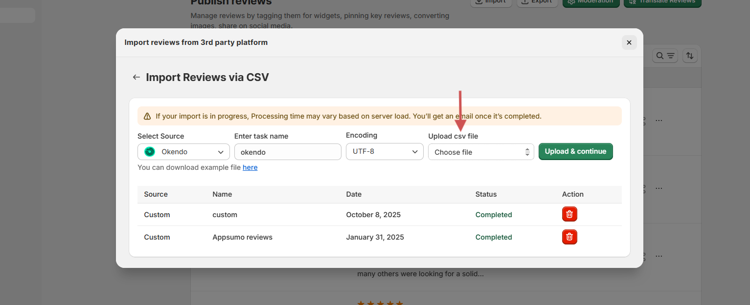 Step 3: Upload CSV and import reviews