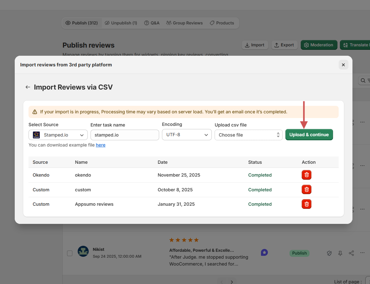 Exporting reviews from Stamped.io and importing them into WiserReview is a quick process.