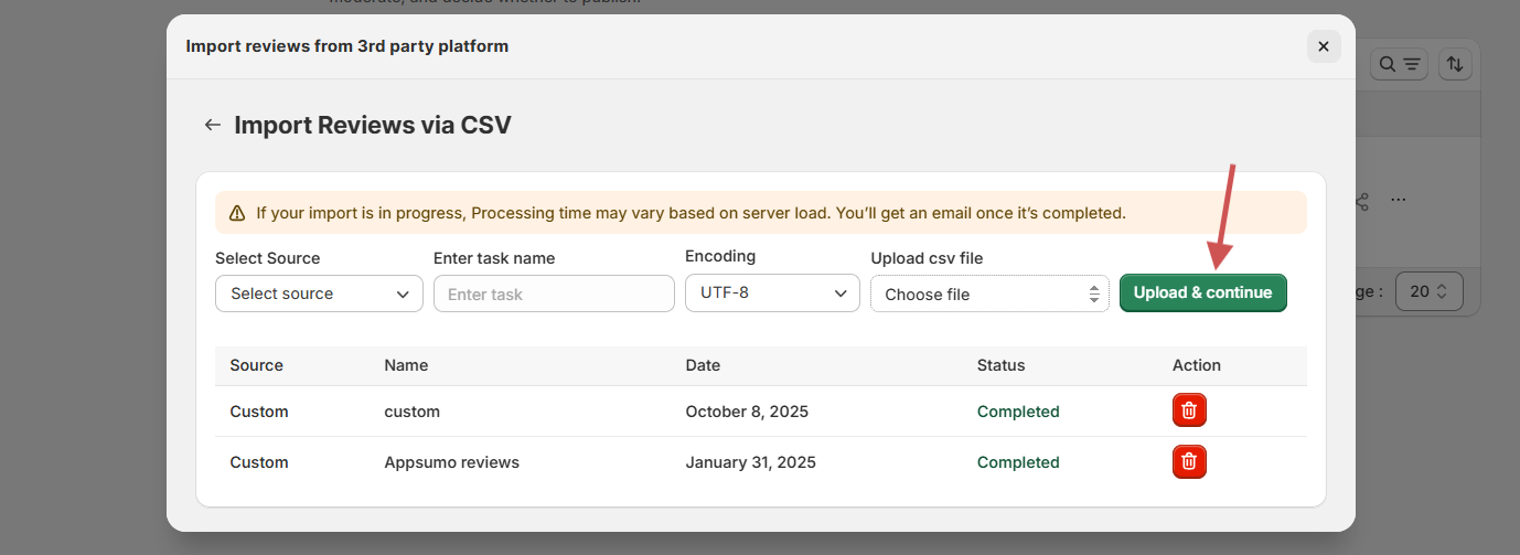 Step 2: Upload the CSV into WiserReview