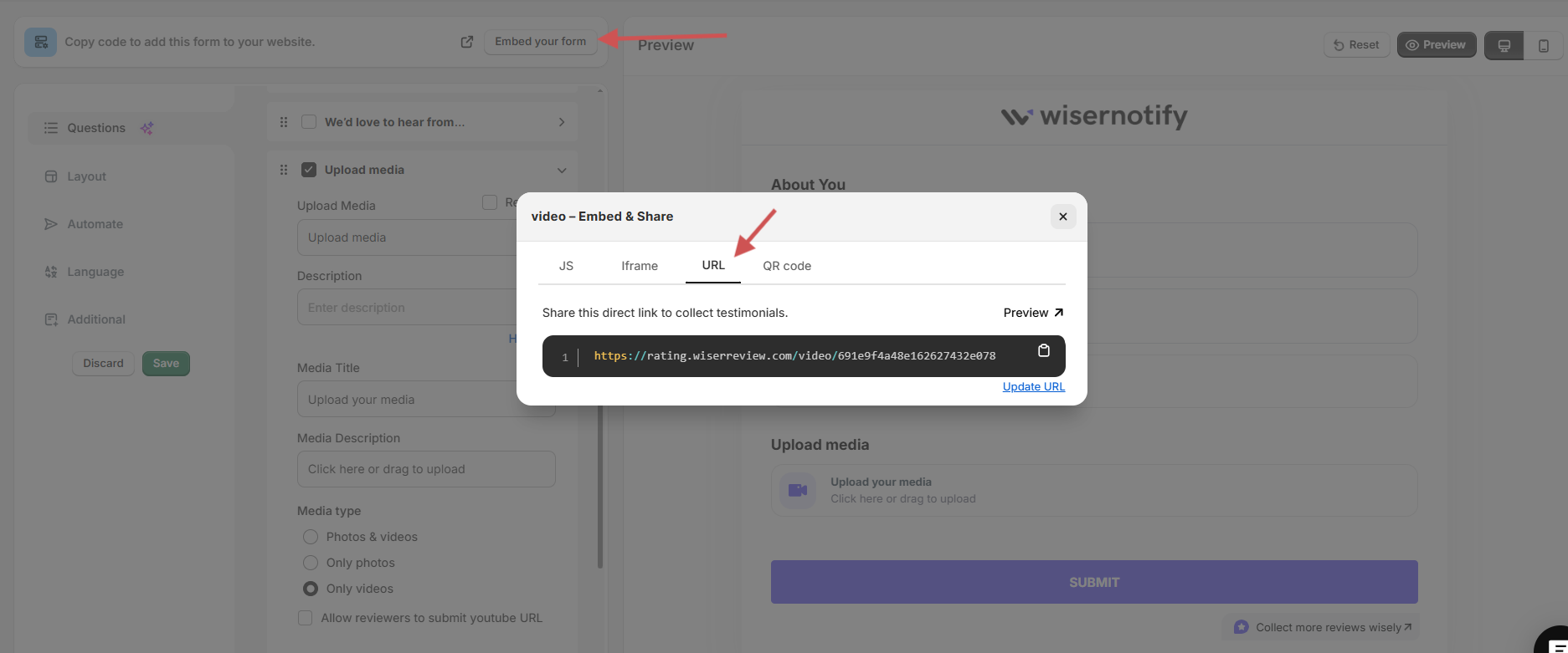 Enter your API Key from your WiserReview account.