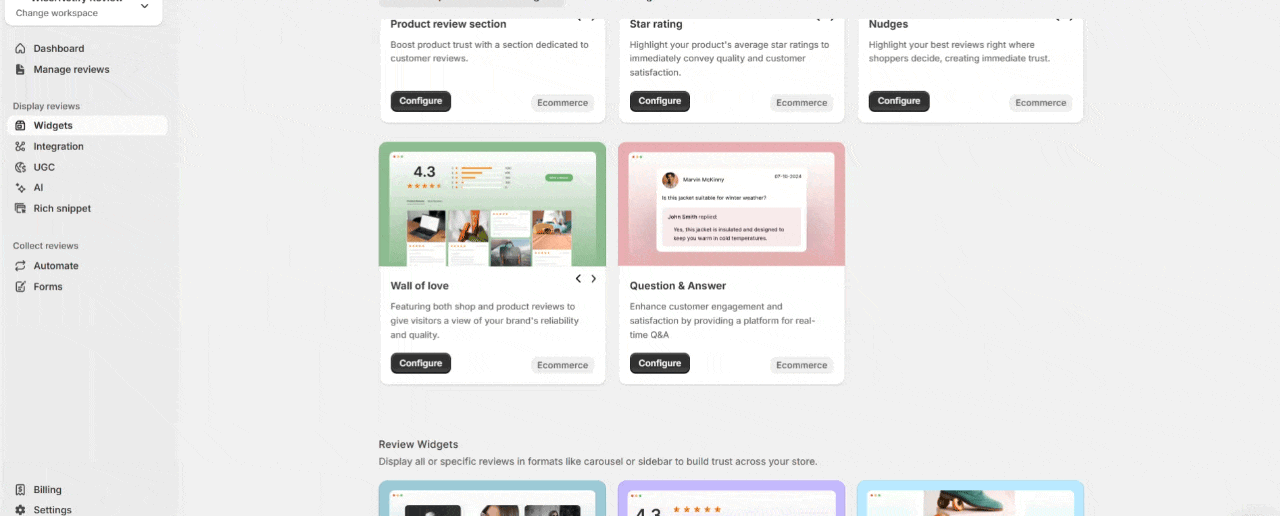 1. In your WiserReview dashboard, go to the left menu and click on Widgets.