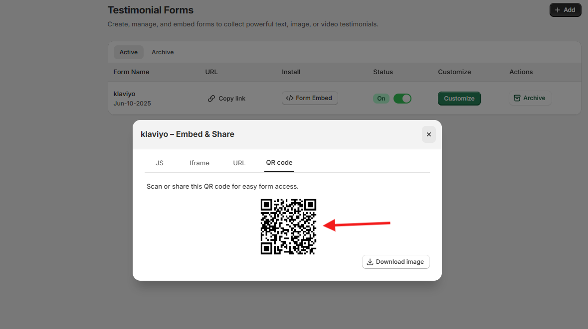 • QR codes provide a quick and easy way for customers to access your review form by scanning the code with their mobile devices. This is particularly useful for physical products and packaging.