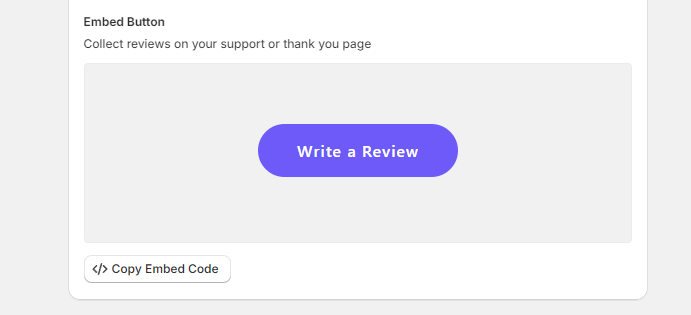 • You can embed a review button on your website, support page, or thank you page. This button, when clicked, will take customers directly to the review form.