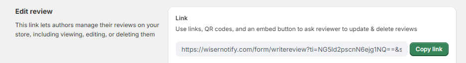 • You can generate a direct link that lets authors manage their reviews. This link can be shared through various channels such as chat, support emails, account pages, and product packaging.