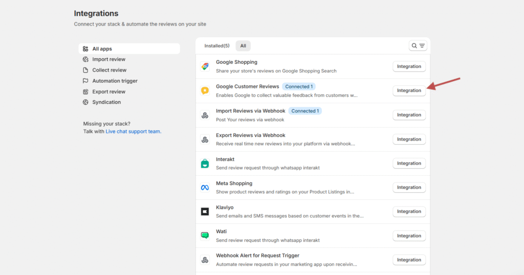 Step 1: Open Google Customer Reviews Integration