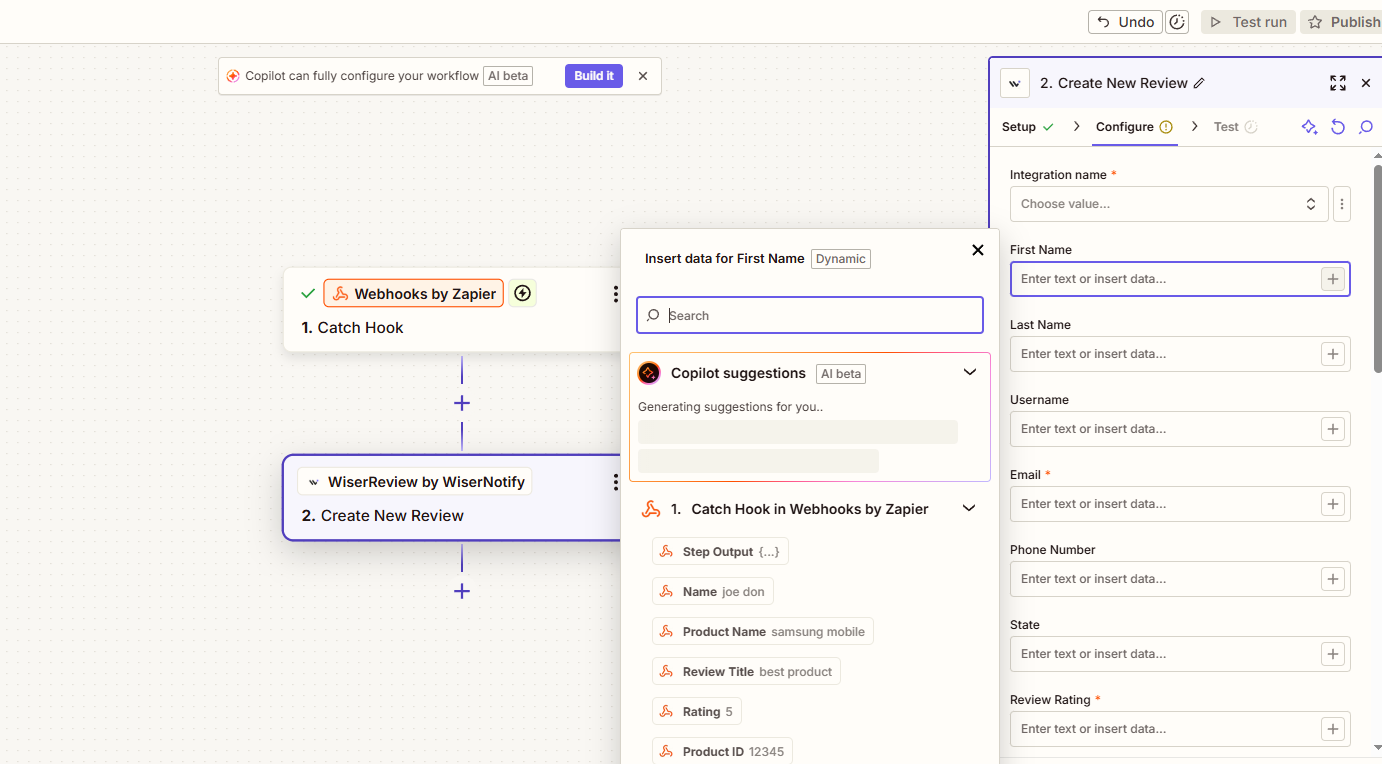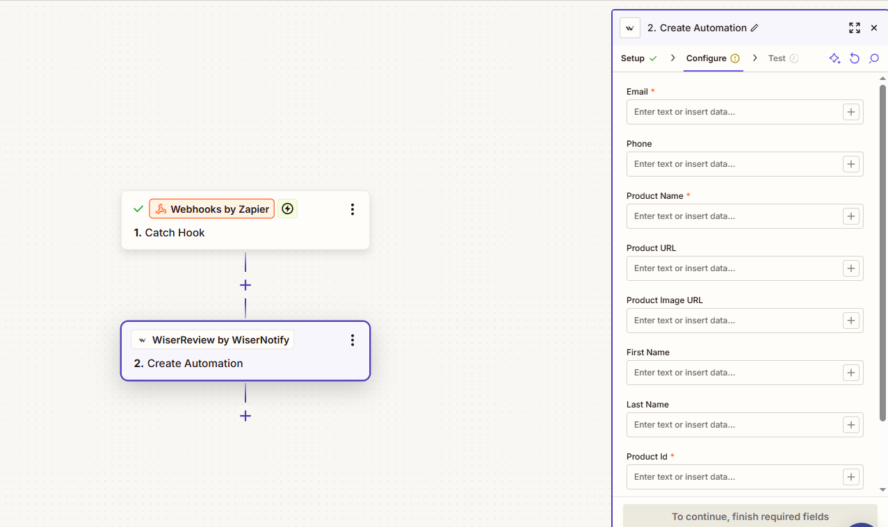 Refer to the Help Doc: How to Create a Zapier Integration in WiserReview for setup instructions.