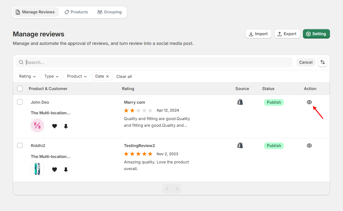 Navigate to Apps > WiserNotify Product Reviews > Manage Reviews