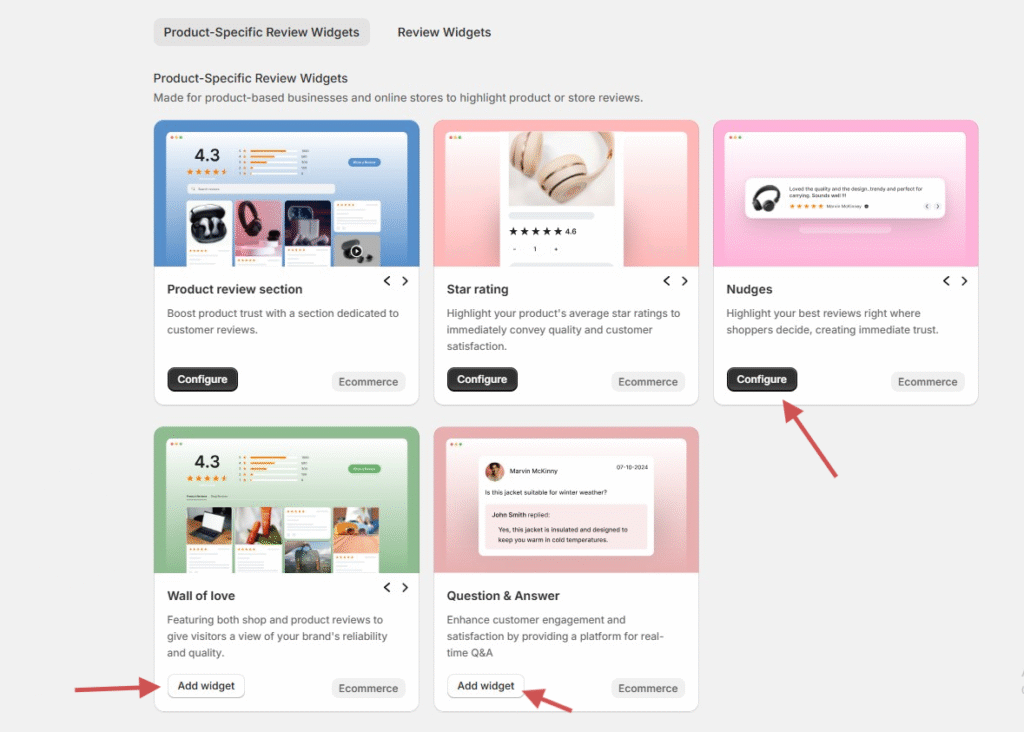 Go to Widgets in the WiserReview dashboard.