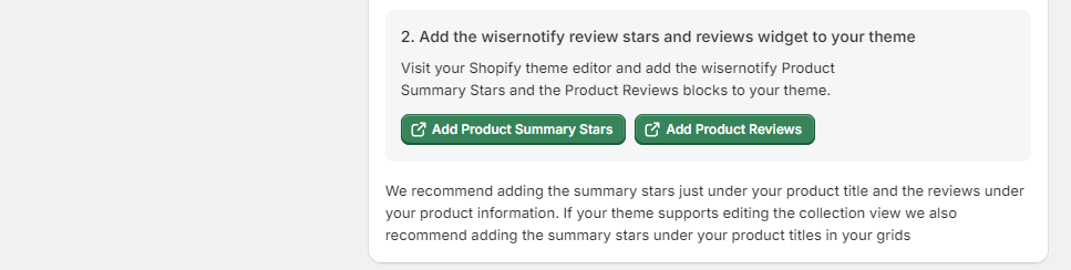 - Add the WiserNotify Product Reviews block to incorporate the reviews widget on your product pages.