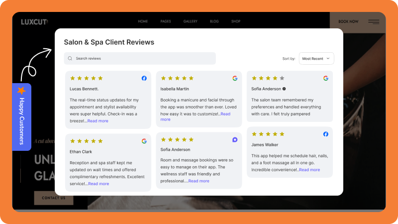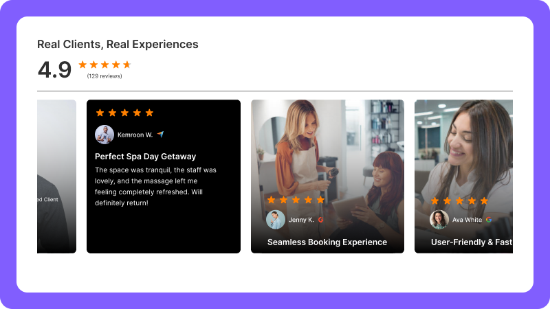 Whether you're running a luxury med spa or a modern boutique clinic, your reviews will feel like a natural part of your experience, on desktop or mobile.