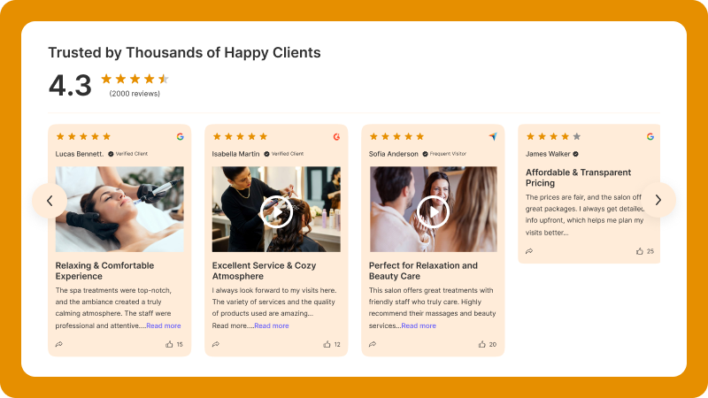 WiserReview helps you showcase real client experiences, complete with photos, videos, or written feedback, so trust is built before they ever step through your door.