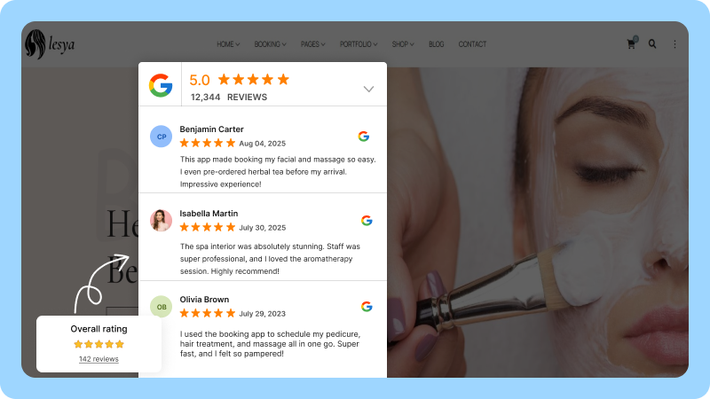 Yes, with copy-paste widgets you can embed reviews anywhere, booking pages, treatment descriptions, or homepage.