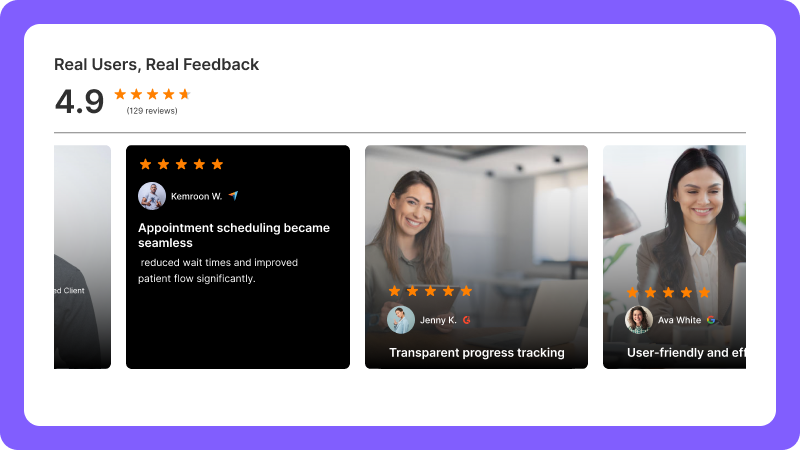 Yes. Use carousels, badges, or full review walls to place testimonials on your homepage, booking pages, or provider profiles.