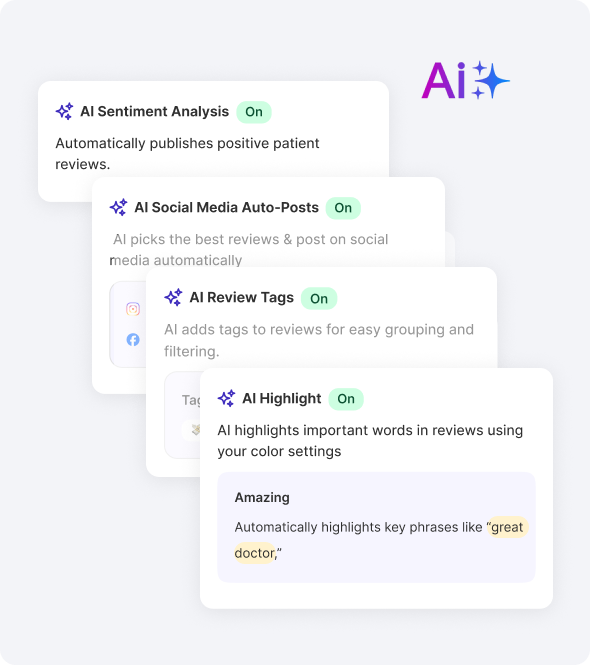 Everything you need to collect, manage and show patient reviews while keeping it simple for you and your patients.