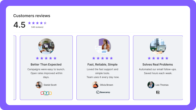 Adding reviews near CTAs, demos, or trial signups helps late-stage buyers move forward.