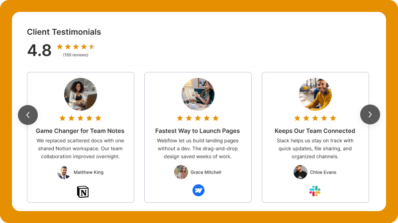 Testimonials that highlight ROI or quick wins are especially effective at nudging conversions.