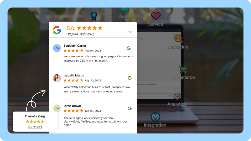 Boost conversions and trust with sleek, real-time popups that highlight your top reviews.