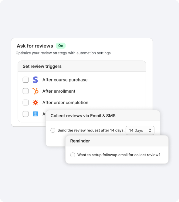 Send requests based on usage milestones, NPS triggers, or customer health scores with zero manual outreach.