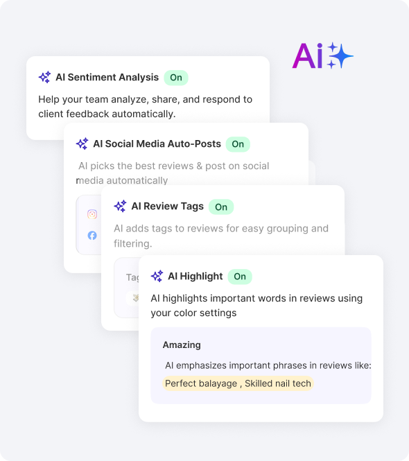 Collect feedback from happy clients and share it on your website, Google, and social media. Build trust so new customers choose your salon with confidence.