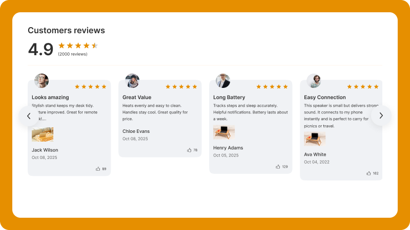 Highlight your best reviews right where shoppers decide, creating immediate trust.